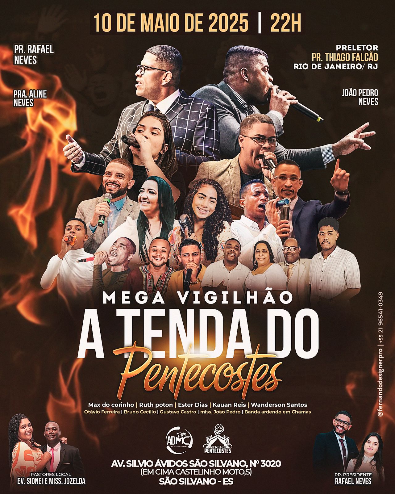 Pastor Rafael está à frente de vários projetos ministeriais, sendo um deles o Mega Vigilhão A Tenda do Pentecostes, onde se estende oportunidades a cantores e pregadores pequenos ou não descobertos ainda.